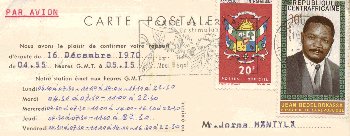 CENTRAL AFRICAN REPUBLIC: Radio Bangui, 5035 kHz. December 1970.