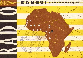 Radio Bangui was one of the OCORA-stationsof the Francophone Africa. I received identical looking QSL-cards from Radio TV Gabonaise 4777 kHz, Radio Congo Brazzaville 4765 kHz and Radio Mali 4835 kHz.