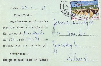 ANGOLA: Radio Clube de Cabinda, 5033 kHz. December 1970.