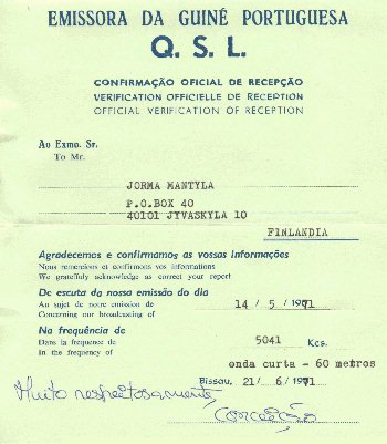 GUINEA (Portuguese): Emissora da Guiné Portuguesa, 5041 kHz. May 1971.