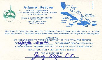 TURKS & CAICOS ISLANDS: Atlantic Beacon, 1570 kHz. December 1986.