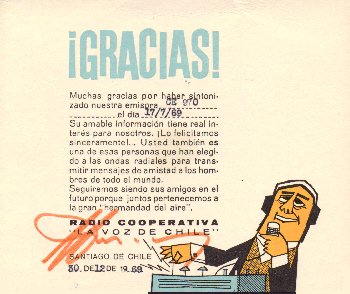 CHILE: Radio Cooperativa "La Voz de Chile", 9690 kHz. July 1969.