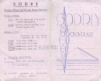 URUGUAY: SODRE, Montevideo, 15275 kHz. November 1960.