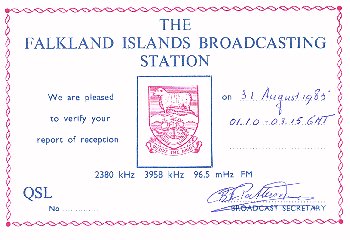FALKLAND ISLANDS: FIBS Stanley, 2380 kHz. August 1985.