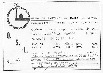 BRAZIL: Rádio Sociedade de Feira de Santana, 4765 kHz. August 1970.