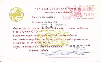 COLOMBIA: HJKW La Voz de los Centauros, 5955 kHz. January 1983.