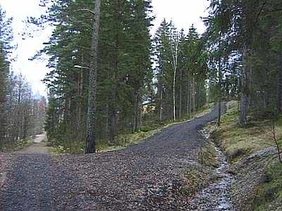 Kaksi polkua. Ylimmäinen on luonnollinen ja alimmainen on teknisen keskuksen urakoima kevyen liikenteen väylä vanhan polun päälle. Väylän leveyden määritti jälleen kerran ylisuuri kaivinkone.
