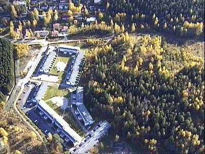 muistuttavat rakennelmat ovat 90 -luvun näkemys rivitaloista. Vasemmalta